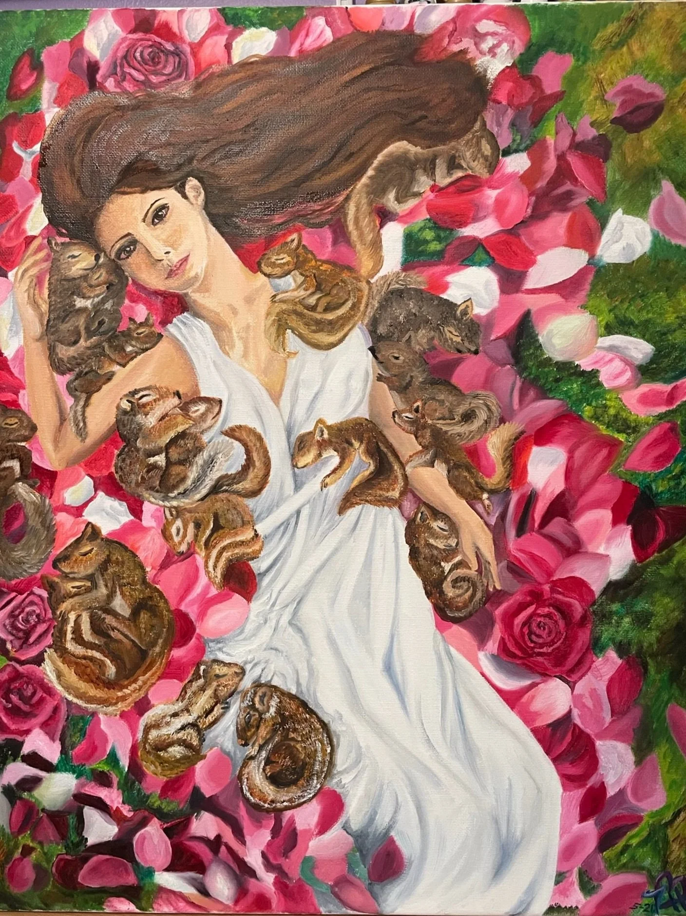 Heavenly I: Squirrel Napping This is the first in a series of paintings, in which I imagine how things would’ve been without the Fall. I don’t know if there will be animals in Heaven. I hope so - at least, in the new earth. I don’t know if we’ll need to sleep either, but if God will allow it, I would like to nap and snuggle with squirrels on roses in the grass.